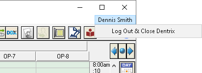 Click your user name, then quickly logout and close all open Dentrix modules.